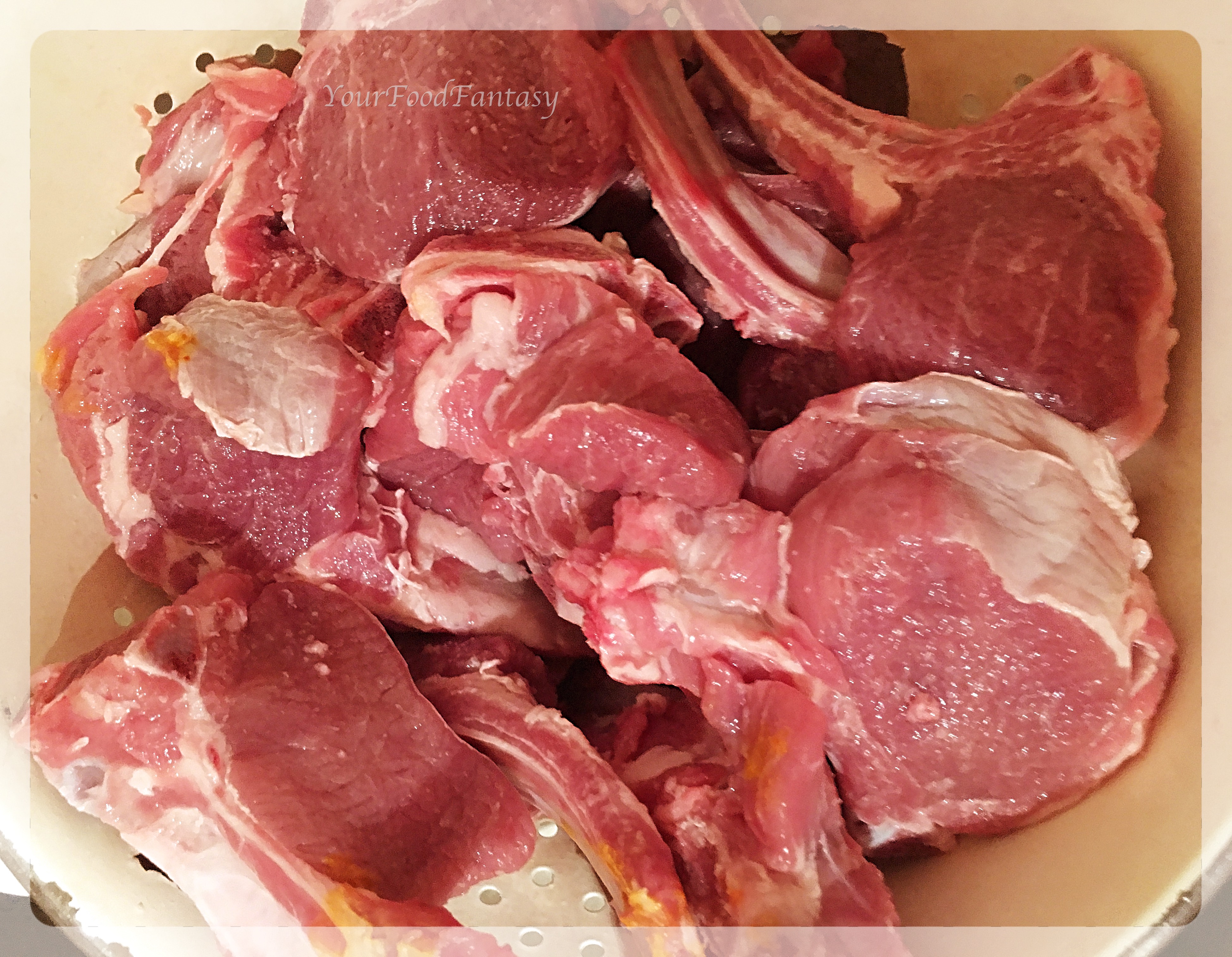 - Wash the chops and keep them in a colander so that all the water drains out.