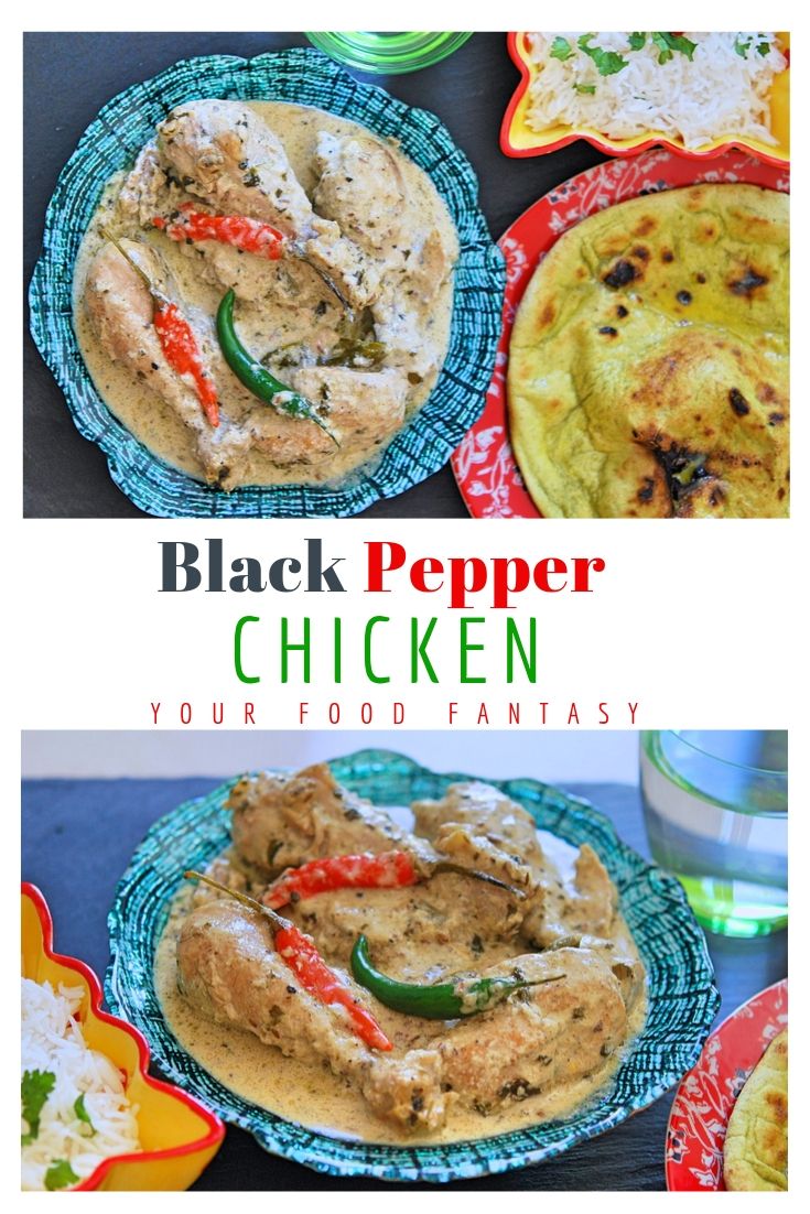 This simple chicken recipe was recently made by partner who loves his chicken and because my daughter also loves chicken, idea was to cook a chicken which is not spicy but still flavoursome. The name suggests there is black pepper in the curry, which is true, however black pepper gives a kind of spice it is more flavourful, rather than spicy and the effect of spice is nullified by adding cream and yogurt.