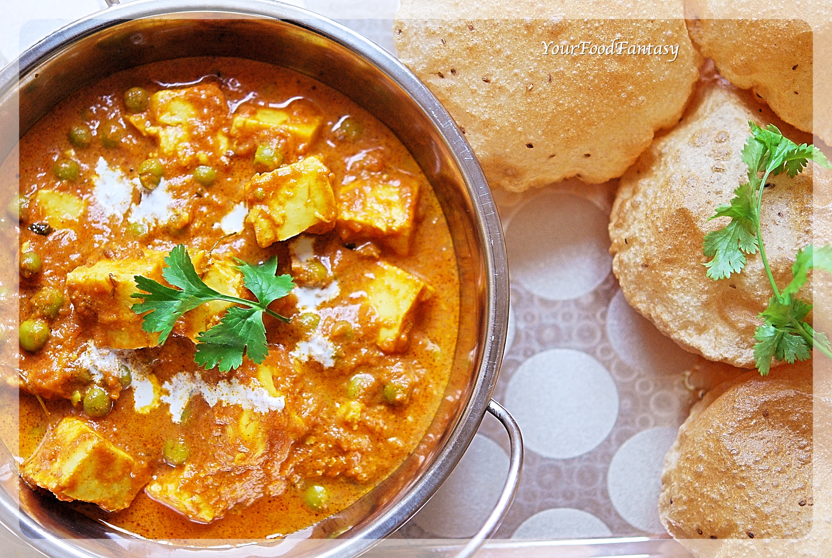 Matar = Green Peas, Paneer = Indian Cottage Cheese. A delicious curry made by cooking paneer and matar in gravy made of onion, tomato and selected Indian spices, makes matar paneer.