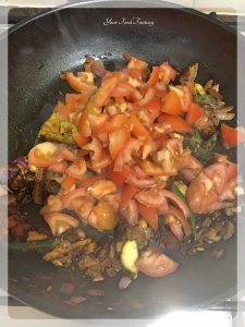 - Now add chopped tomatoes and still it for 2-3 minutes.