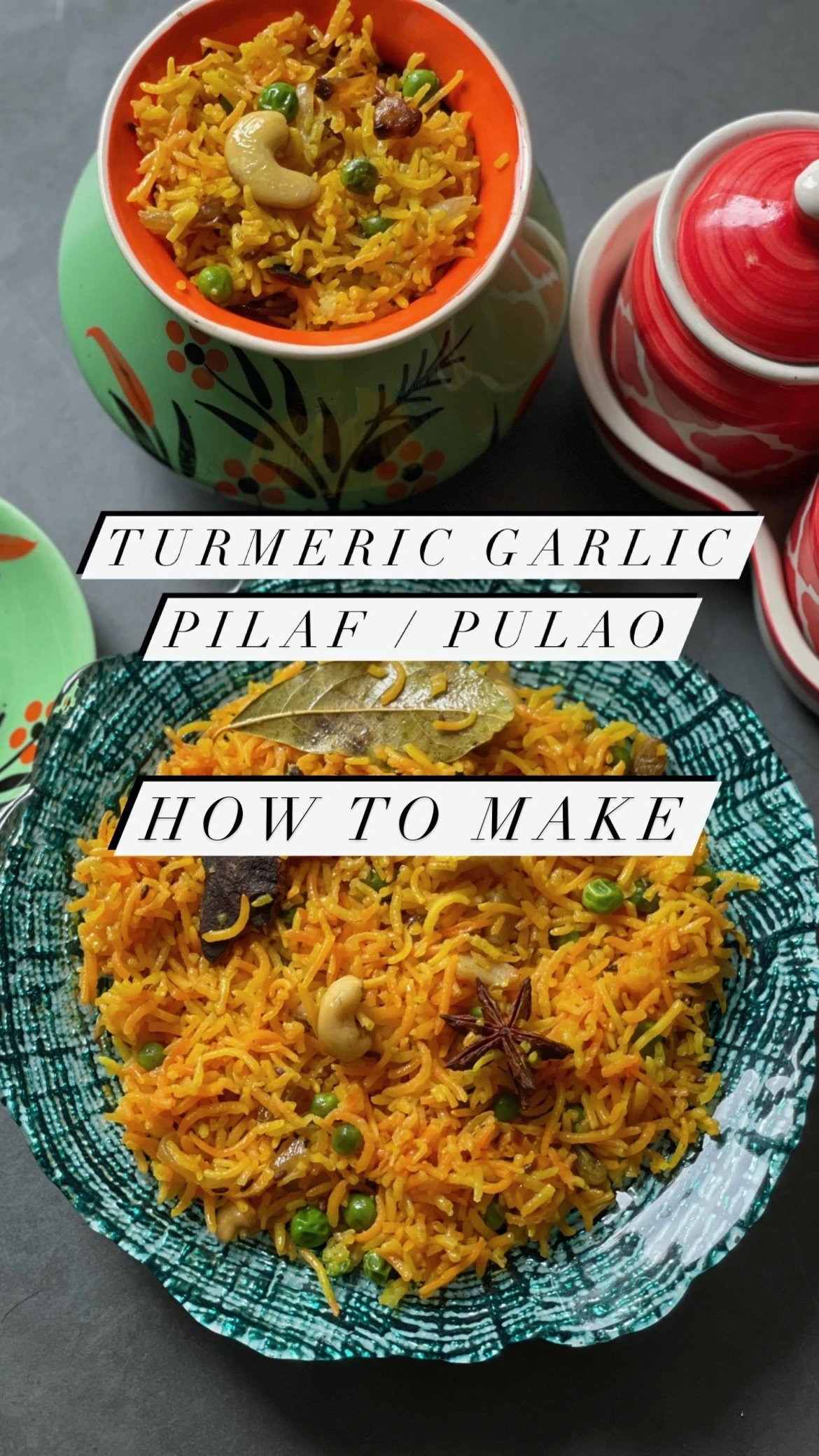 - You can choose veg or non-version, however, here this turmeric garlic pilaf rice is pure vegetarian.