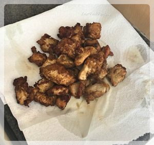 Heat oil in a pan and shallow fry until chicken is well cooked.