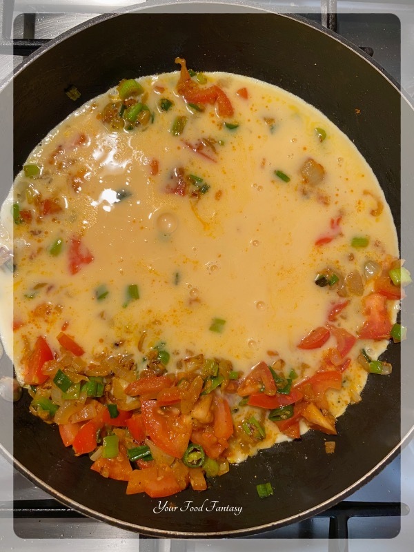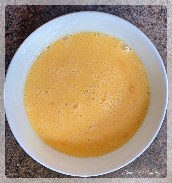 Break the eggs in a wide mouth bowl, add milk and whisk the eggs thoroughly.