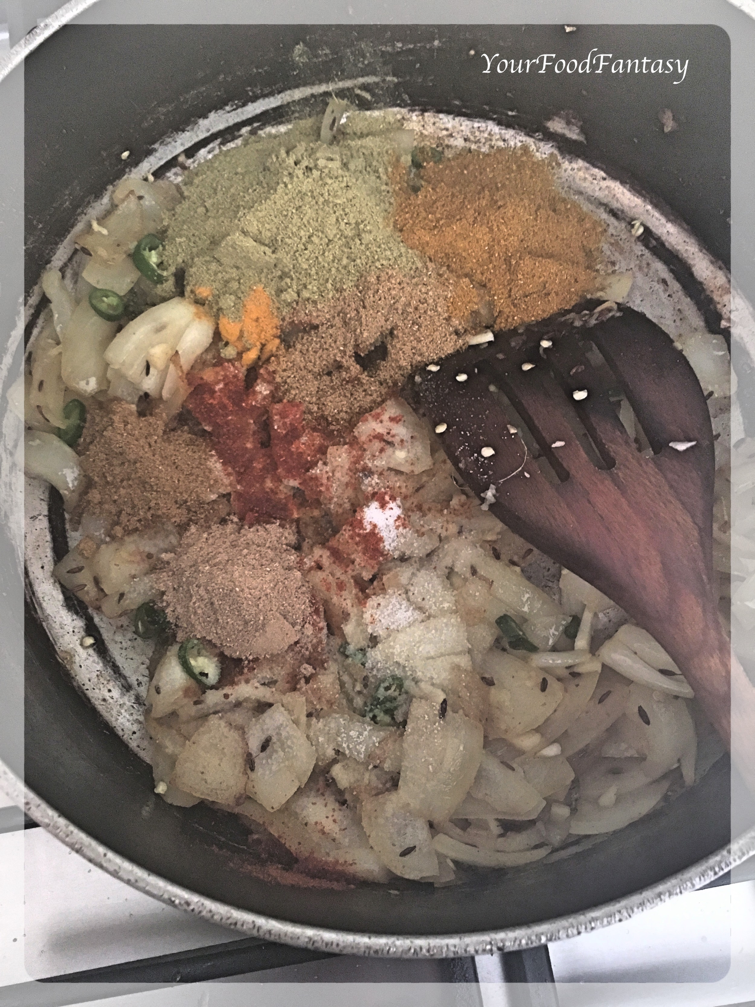 Now add all the spices and sauté for 1 minute.
