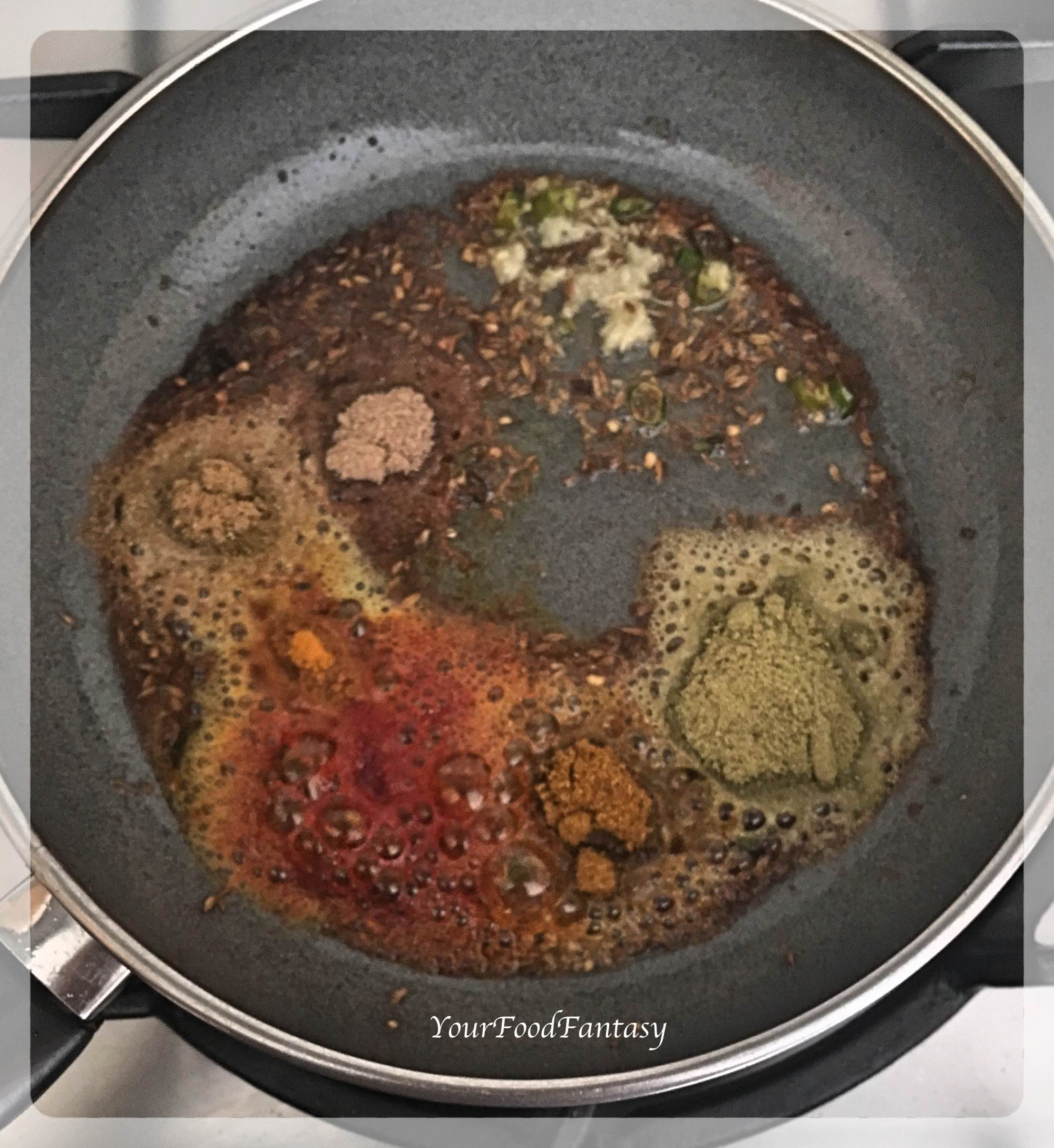 Now add all remaining spices listed for stuffing and sauté for a minute.