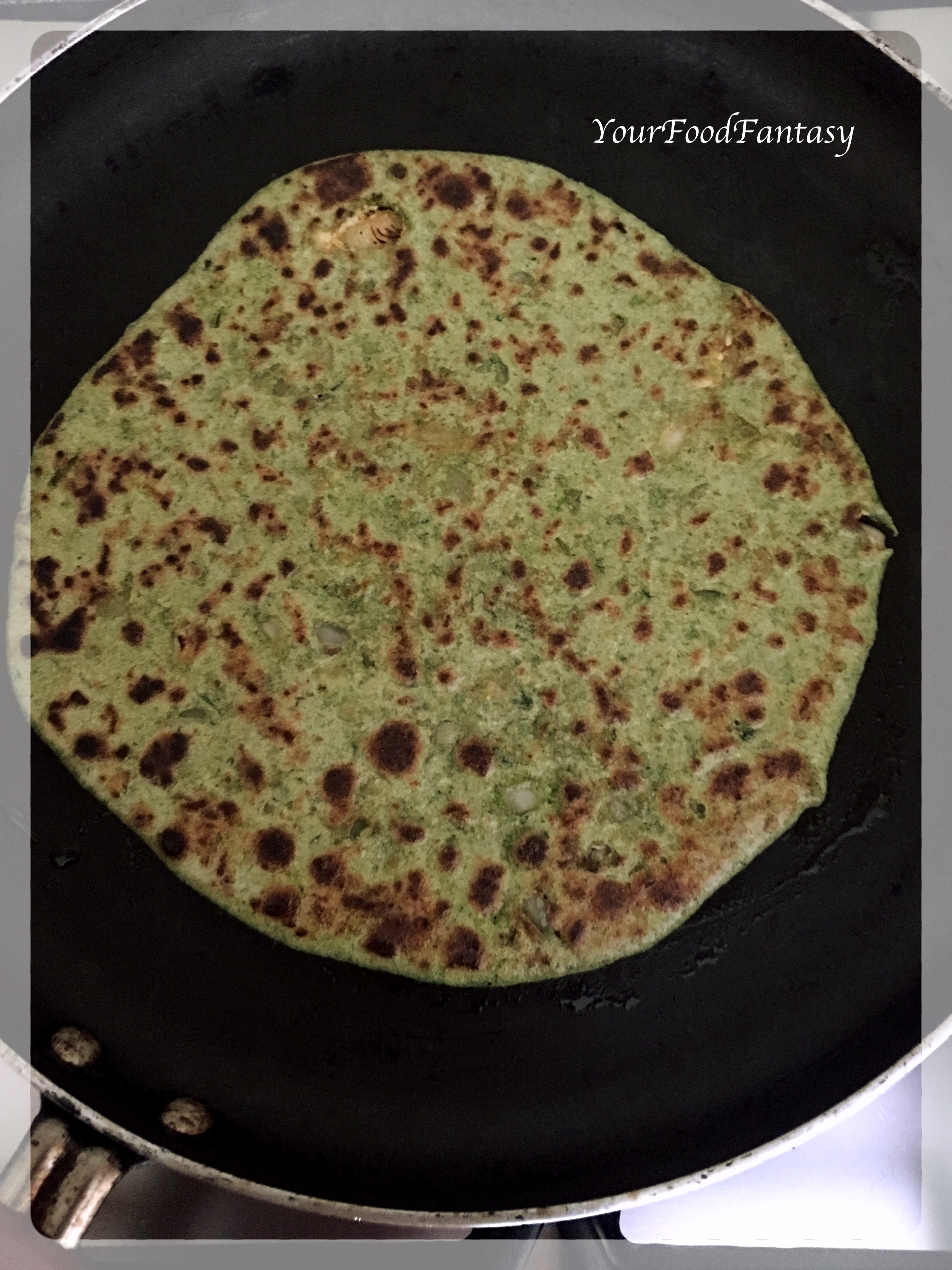 Heat a Skillet/tava on medium heat and place the rolled paratha on it. Flip it after one minute and then apply Oil/butter on top side. Flip it again and apply Oil this side too. Cook it till the paratha gets nice golden colour on both the sides.