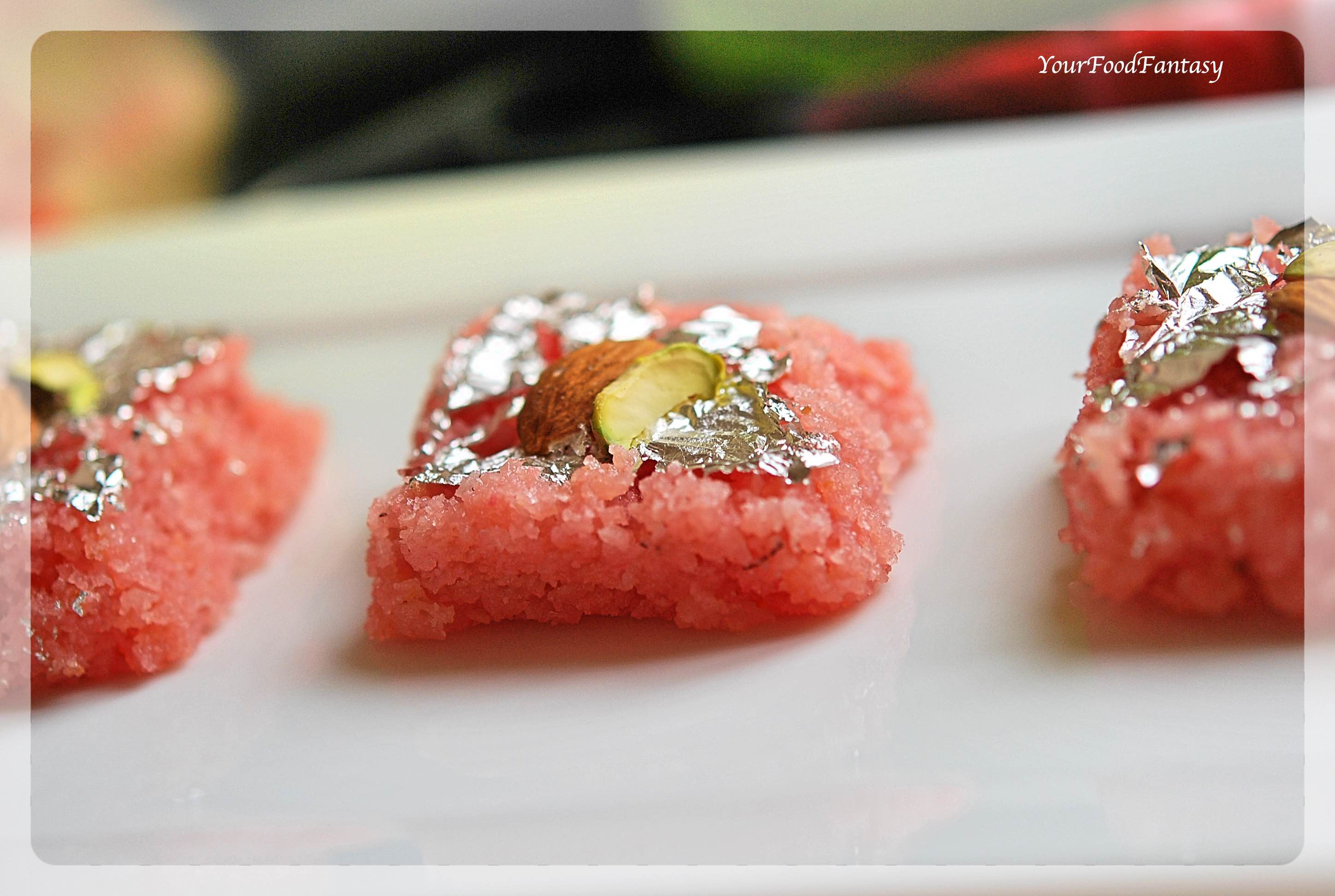 Rose Flavoured Coconut Burfi Recipe