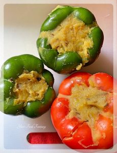 Once the stuffing is cool enough, start stuffing it in the peppers. Do it gently otherwise peppers can break.
