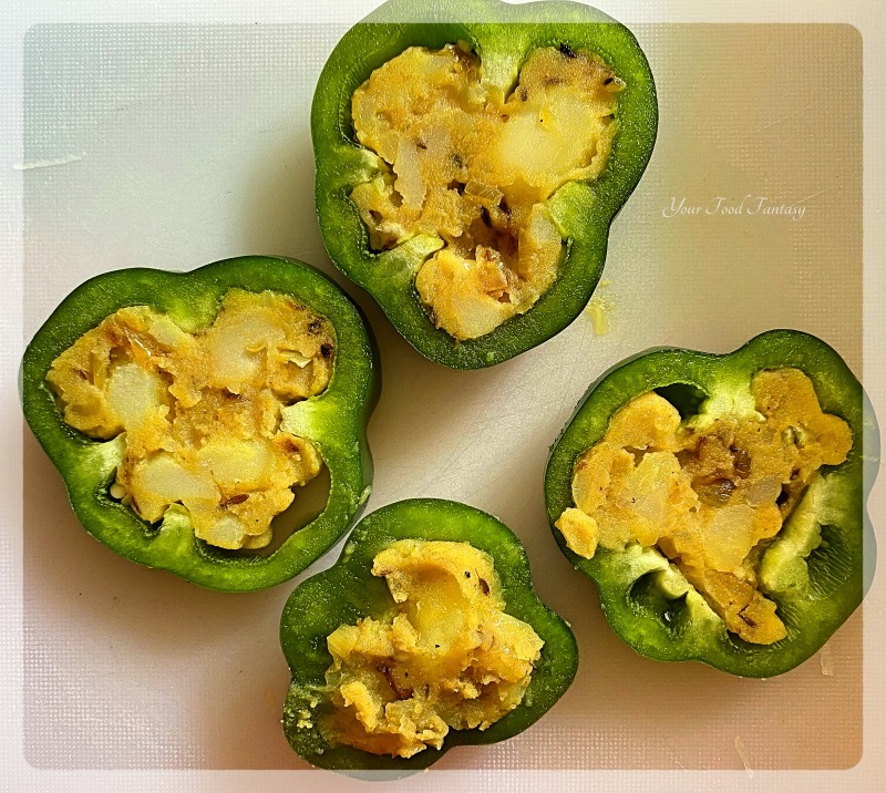 Don’t overcook the capsicum discs as that will end up in pepper shrinking and stuffing coming out.